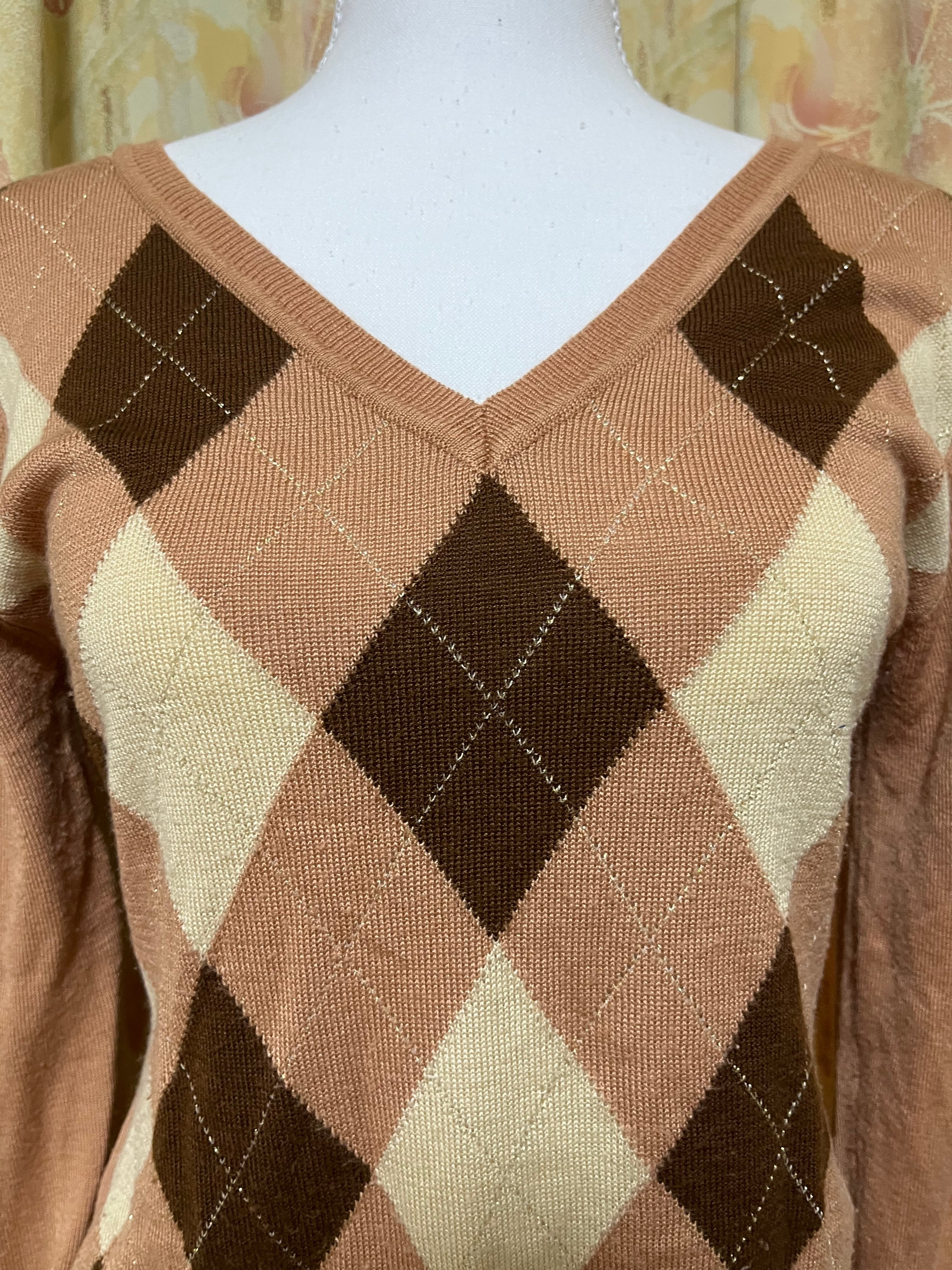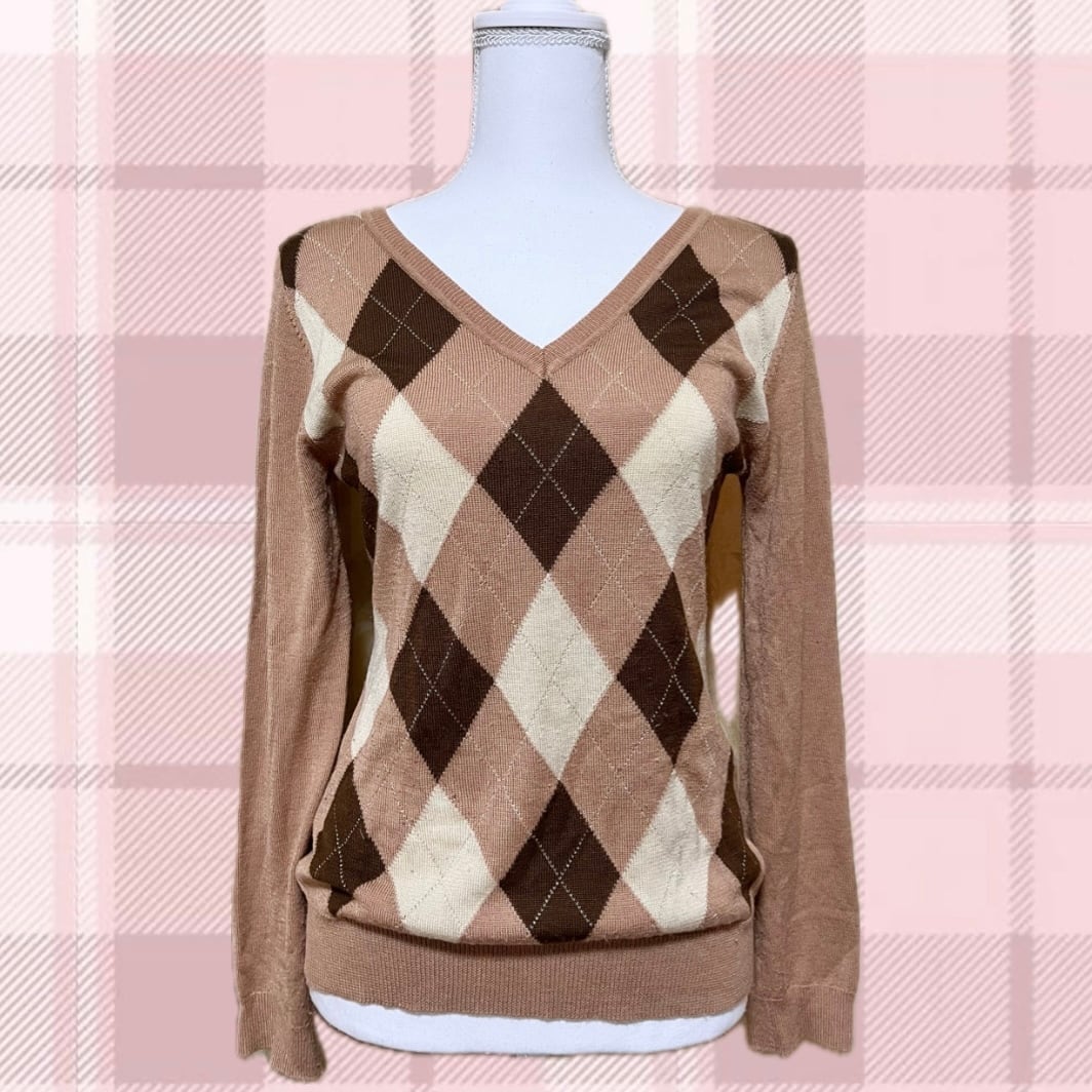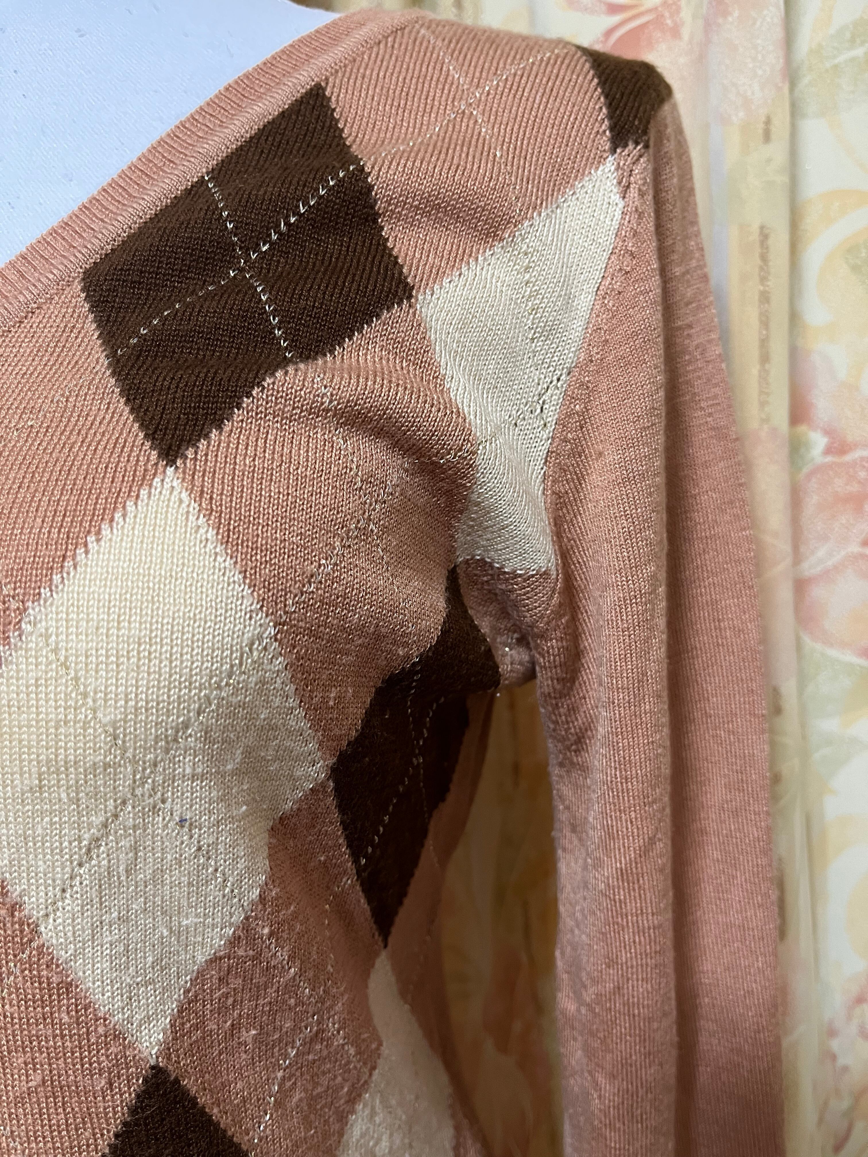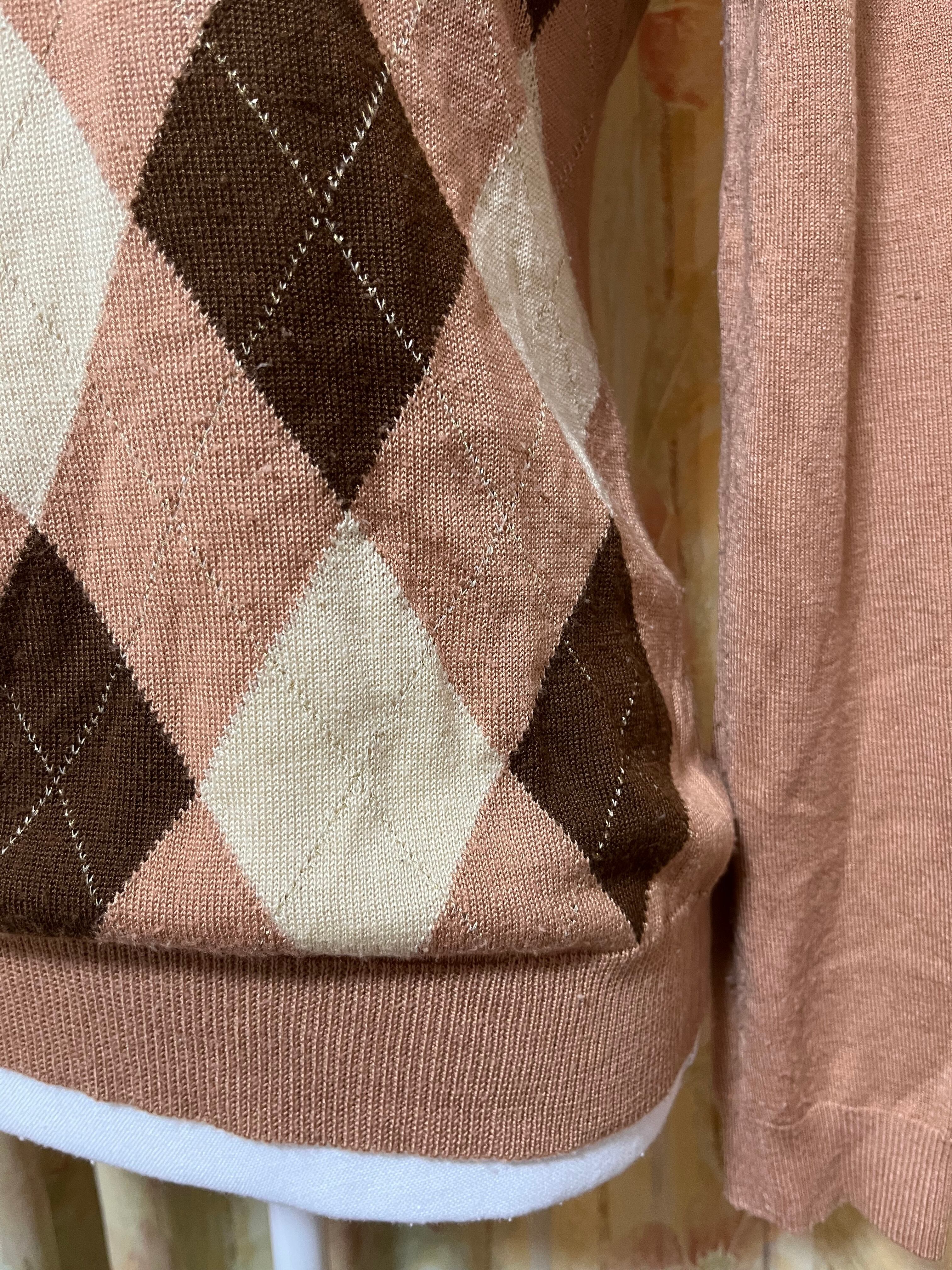 ピンクブラウンアーガイルニット