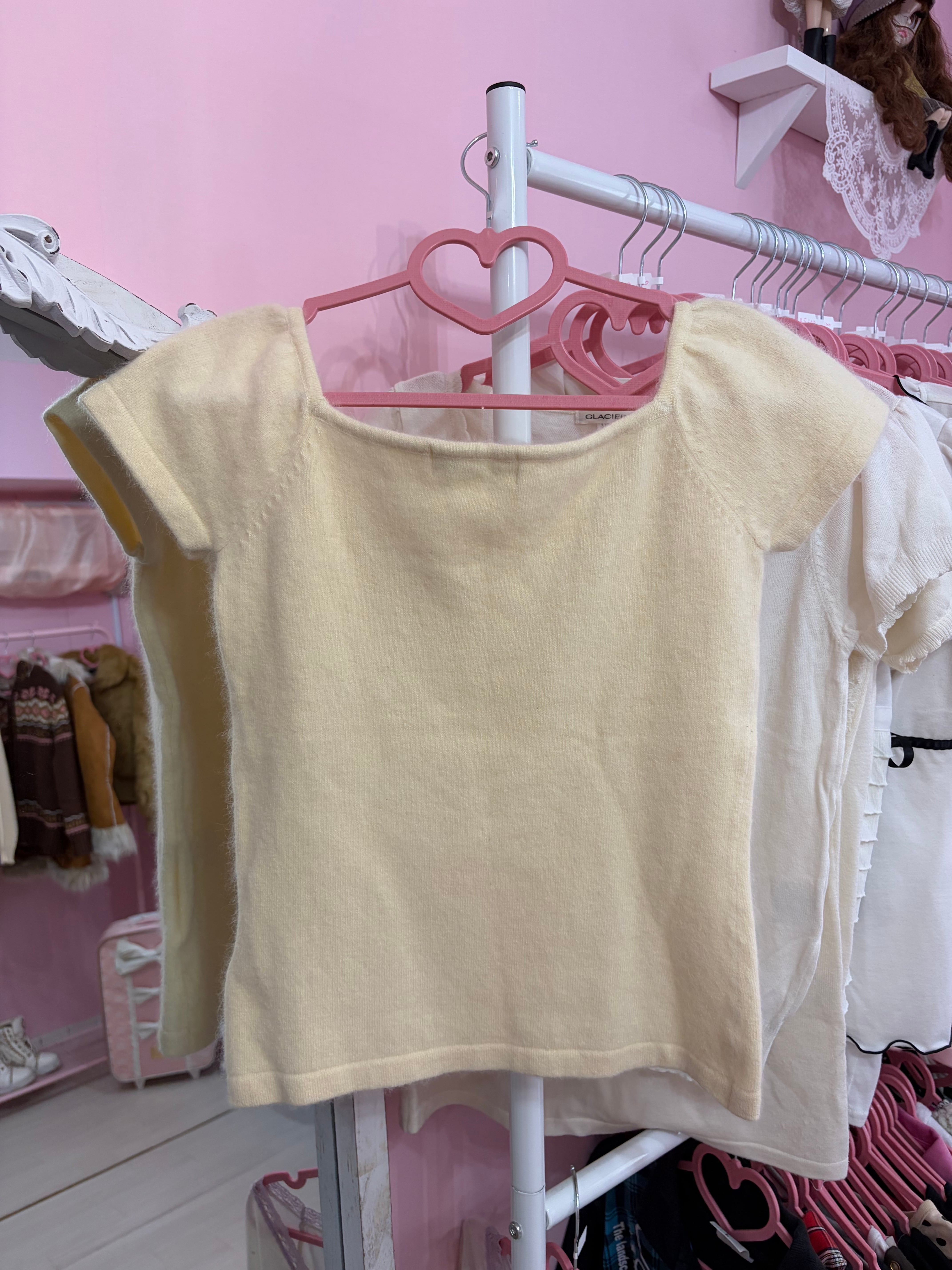 クリームイエローリボンニットトップス | Pool Doll