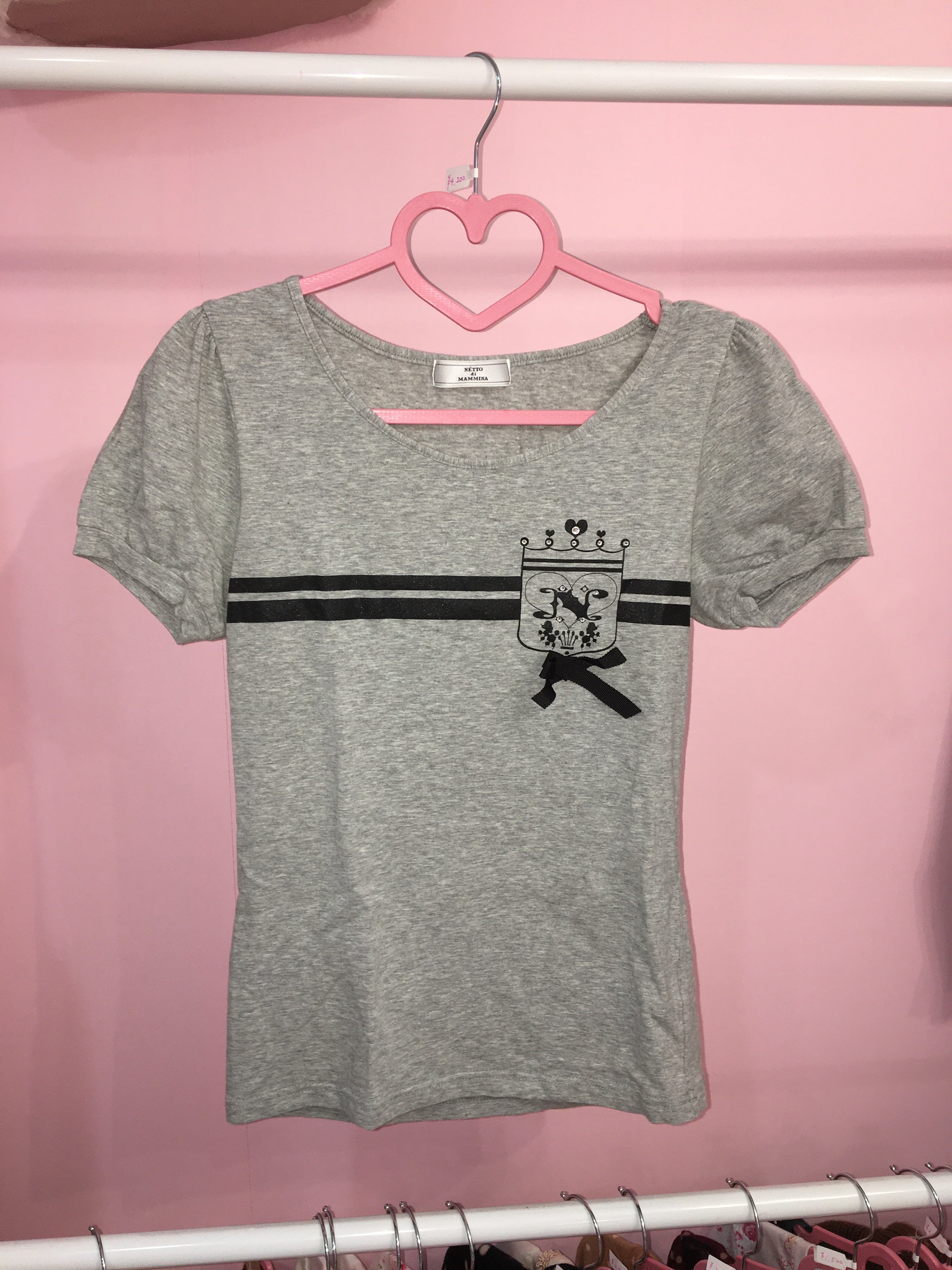 グレーパフスリーブリボンTシャツ | Pool Doll